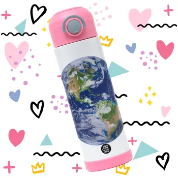 Planet Earth, Παιδικό παγούρι θερμό, ανοξείδωτο, με καλαμάκι ασφαλείας, ΡΟΖ (500ml)