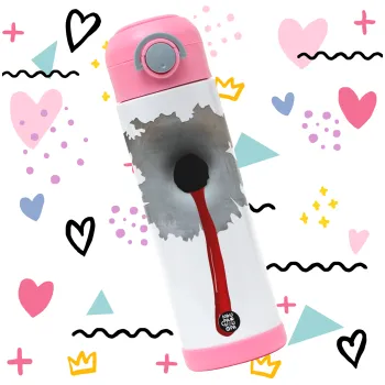 Bullet holes, Παιδικό παγούρι θερμό, ανοξείδωτο, με καλαμάκι ασφαλείας, ΡΟΖ (500ml)