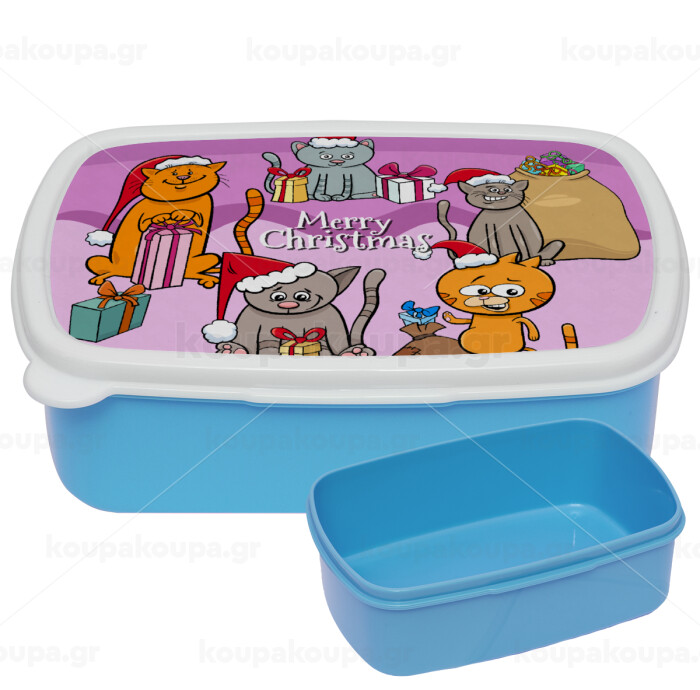 Merry Christmas Cats, ΜΠΛΕ παιδικό δοχείο φαγητού (lunchbox) πλαστικό (BPA-FREE) Lunch Βox M18 x Π13 x Υ6cm