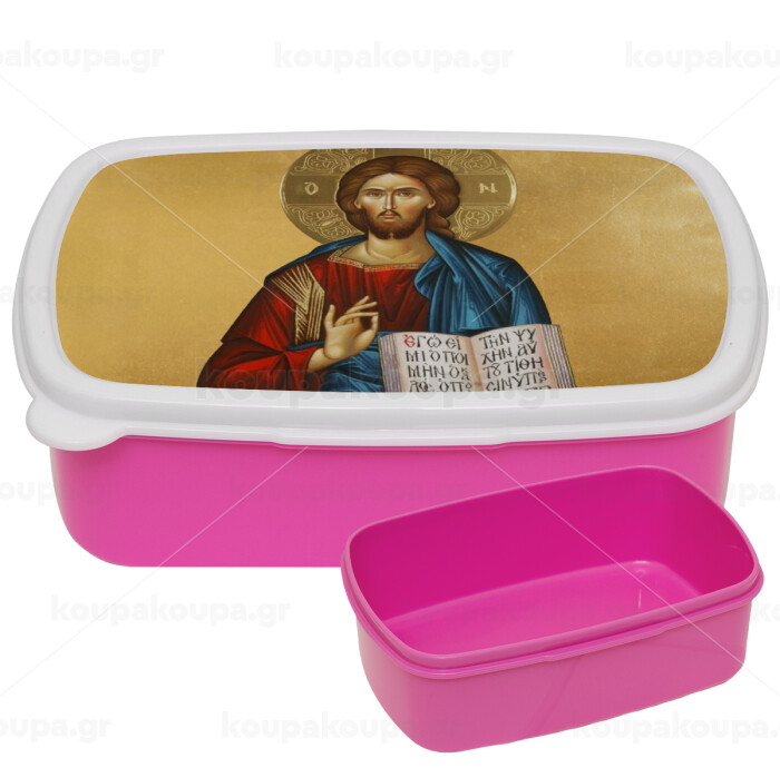 Ιησούς, ΡΟΖ παιδικό δοχείο φαγητού (lunchbox) πλαστικό (BPA-FREE) Lunch Βox M18 x Π13 x Υ6cm