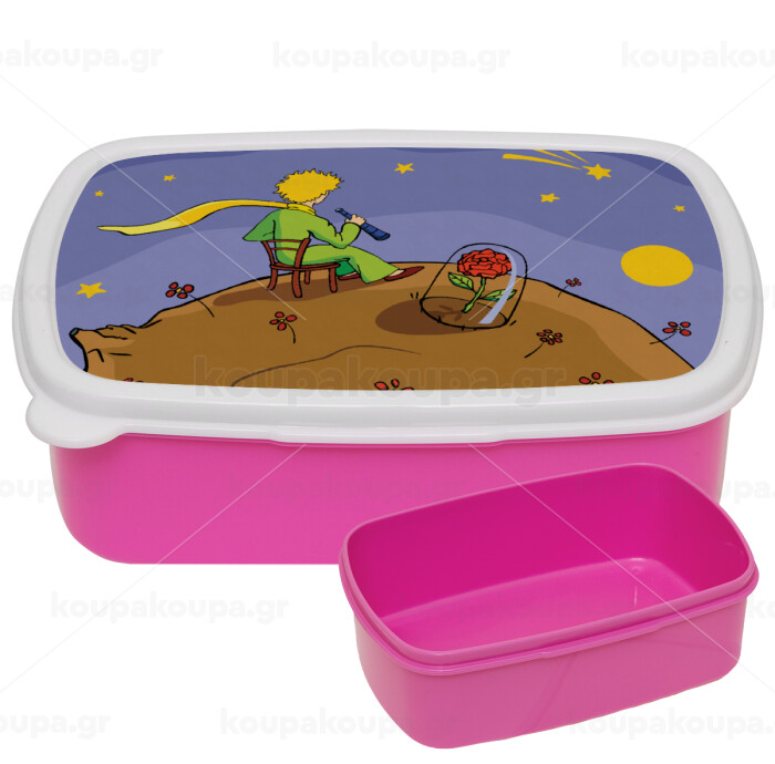 Ο μικρός πρίγκιπας planet, ΡΟΖ παιδικό δοχείο φαγητού (lunchbox) πλαστικό (BPA-FREE) Lunch Βox M18 x Π13 x Υ6cm