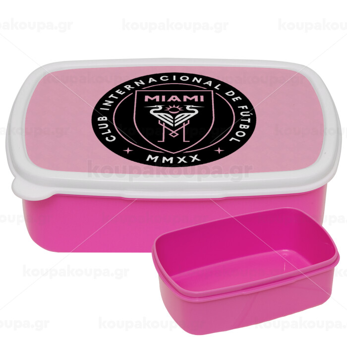 Ίντερ Μαϊάμι (Inter Miami CF), ΡΟΖ παιδικό δοχείο φαγητού (lunchbox) πλαστικό (BPA-FREE) Lunch Βox M18 x Π13 x Υ6cm