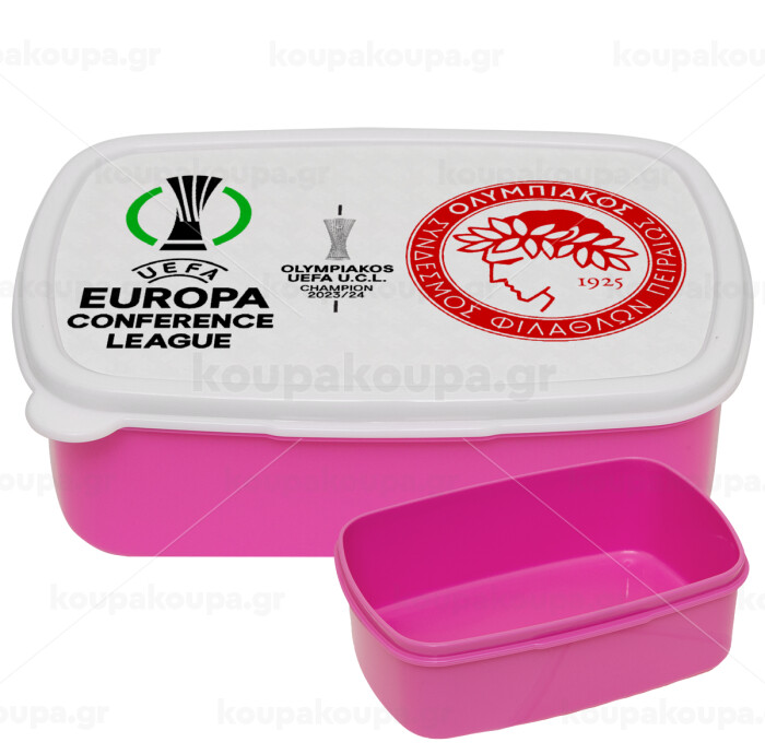 Ολυμπιακός νικητής UEFA Europa Conference League Champion 2023/24, ΡΟΖ παιδικό δοχείο φαγητού (lunchbox) πλαστικό (BPA-FREE) Lunch Βox M18 x Π13 x Υ6cm