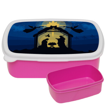Η γέννηση του Ιησού φάτνη, ΡΟΖ παιδικό δοχείο φαγητού (lunchbox) πλαστικό (BPA-FREE) Lunch Βox M18 x Π13 x Υ6cm