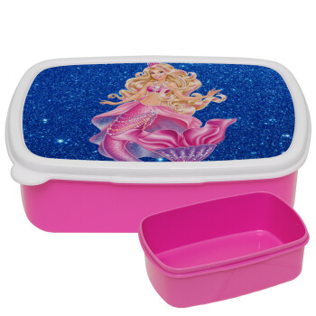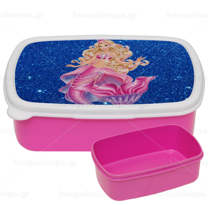 Barbie γοργόνα μπλε, ΡΟΖ παιδικό δοχείο φαγητού (lunchbox) πλαστικό (BPA-FREE) Lunch Βox M18 x Π13 x Υ6cm