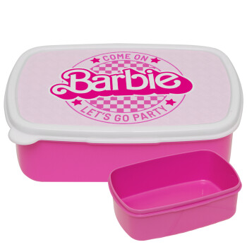 Come On Barbie Lets Go Party , ΡΟΖ παιδικό δοχείο φαγητού (lunchbox) πλαστικό (BPA-FREE) Lunch Βox M18 x Π13 x Υ6cm