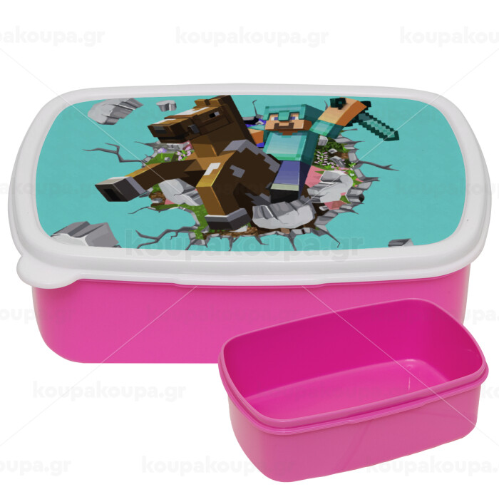 Minecraft brick, ΡΟΖ παιδικό δοχείο φαγητού (lunchbox) πλαστικό (BPA-FREE) Lunch Βox M18 x Π13 x Υ6cm