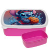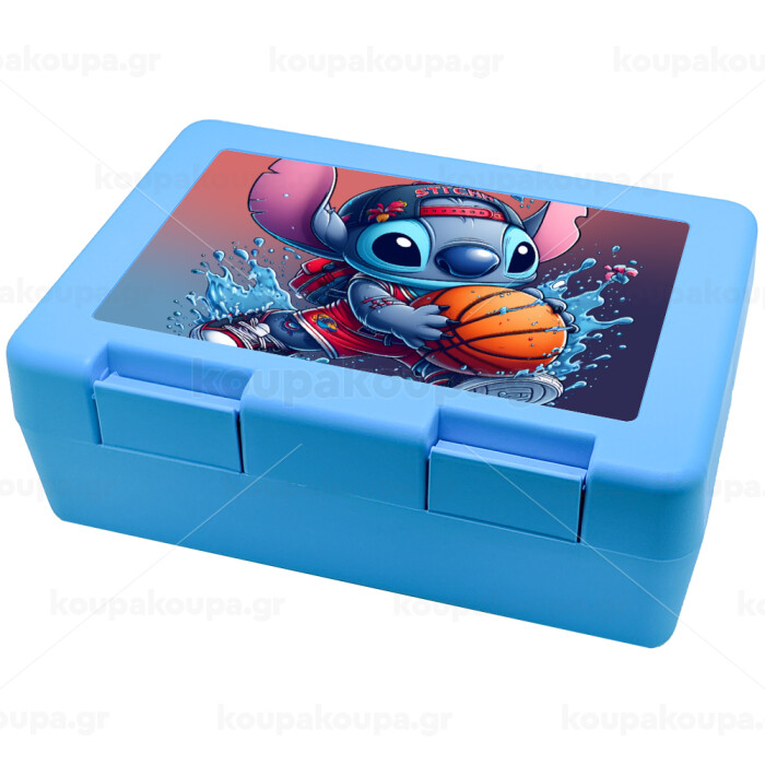 Stitch Basketball, Παιδικό δοχείο κολατσιού ΓΑΛΑΖΙΟ 185x128x65mm (BPA free πλαστικό)