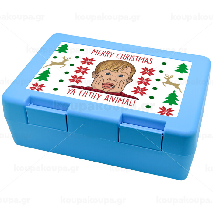 home alone, Merry Christmas ya filthy animal, Παιδικό δοχείο κολατσιού ΓΑΛΑΖΙΟ 185x128x65mm (BPA free πλαστικό)