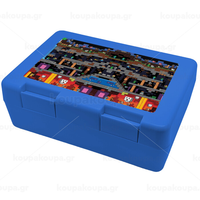 Minecraft 2D map, Παιδικό δοχείο κολατσιού ΜΠΛΕ 185x128x65mm (BPA free πλαστικό)