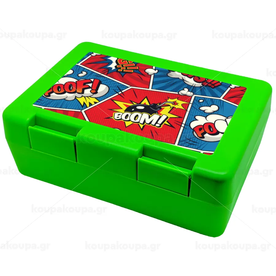 Comic boom!, Παιδικό δοχείο κολατσιού ΠΡΑΣΙΝΟ 185x128x65mm (BPA free πλαστικό)
