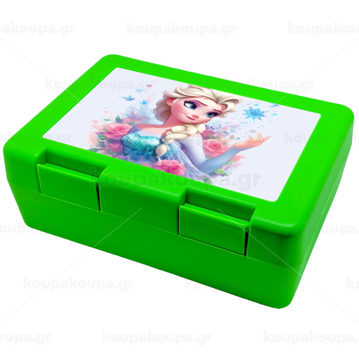 Elsa Princess, Παιδικό δοχείο κολατσιού ΠΡΑΣΙΝΟ 185x128x65mm (BPA free πλαστικό)