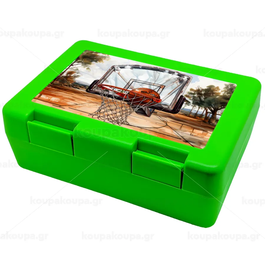 Basketball, Παιδικό δοχείο κολατσιού ΠΡΑΣΙΝΟ 185x128x65mm (BPA free πλαστικό)