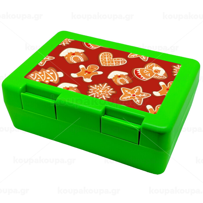 xmas cookies, Παιδικό δοχείο κολατσιού ΠΡΑΣΙΝΟ 185x128x65mm (BPA free πλαστικό)