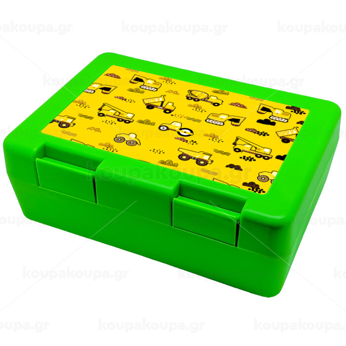 Αμαξάκια φορτωτές και μπουλντόζες, Παιδικό δοχείο κολατσιού ΠΡΑΣΙΝΟ 185x128x65mm (BPA free πλαστικό)
