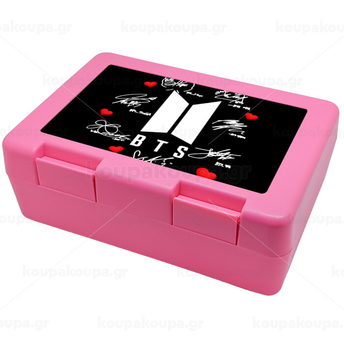 BTS signs, Παιδικό δοχείο κολατσιού ΡΟΖ 185x128x65mm (BPA free πλαστικό)