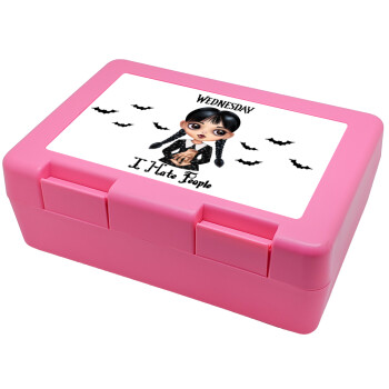 Wednesday Adams, i hate people, Παιδικό δοχείο κολατσιού ΡΟΖ 185x128x65mm (BPA free πλαστικό)
