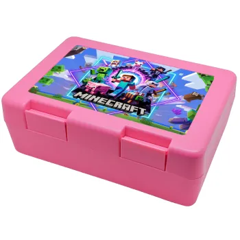 Minecraft Nether Portal, Παιδικό δοχείο κολατσιού ΡΟΖ 185x128x65mm (BPA free πλαστικό)