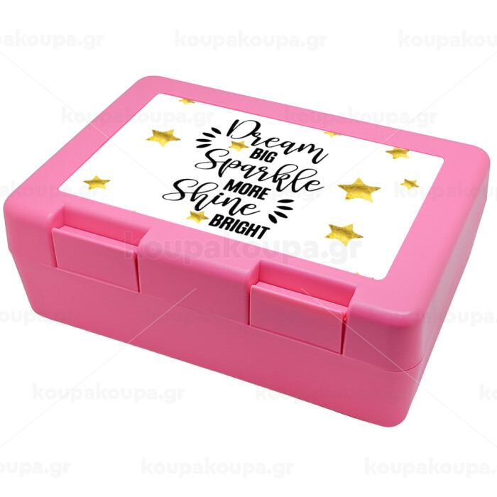 Dream big, Sparkle more, Shine bright, Παιδικό δοχείο κολατσιού ΡΟΖ 185x128x65mm (BPA free πλαστικό)