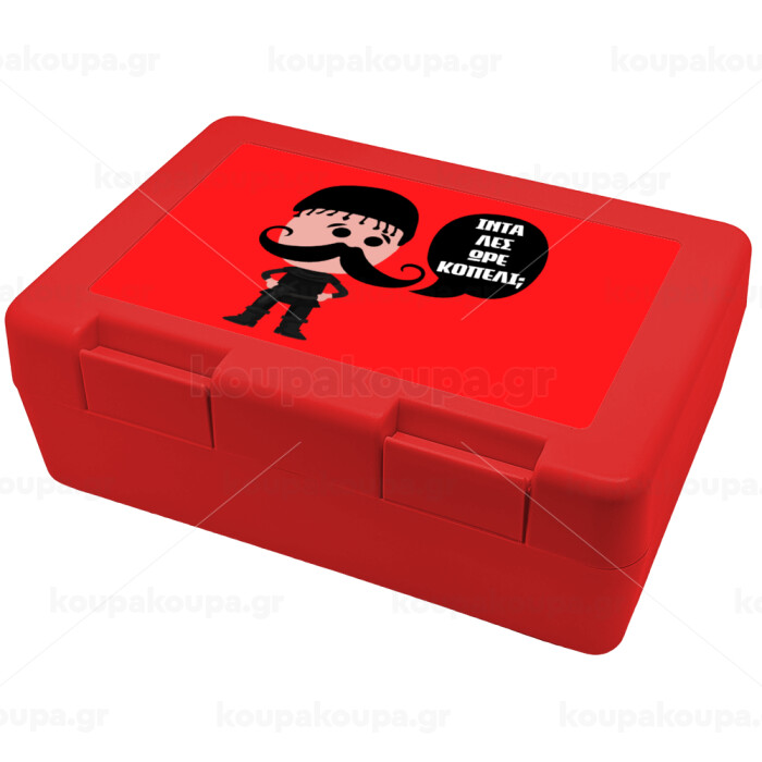 Κρητικός "Ίντα λες ωρέ κοπέλι", Παιδικό δοχείο κολατσιού ΚΟΚΚΙΝΟ 185x128x65mm (BPA free πλαστικό)