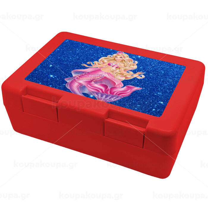 Barbie γοργόνα μπλε, Παιδικό δοχείο κολατσιού ΚΟΚΚΙΝΟ 185x128x65mm (BPA free πλαστικό)