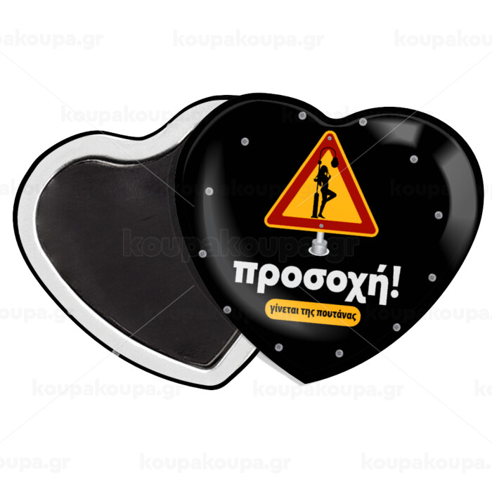 Προσοχή Γίνεται της πουτ.νας, Μαγνητάκι καρδιά (57x52mm)