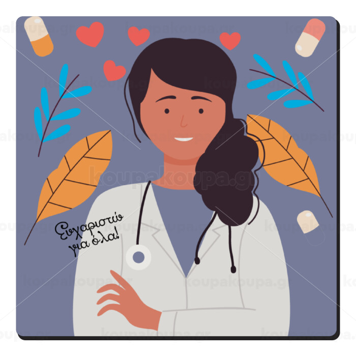 Ευχαριστώ για όλα γιατρέ, Τετράγωνο μαγνητάκι ξύλινο 6x6cm