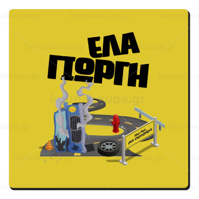 Έλα Γιώργη, πω πω μια στροφάρα, Τετράγωνο μαγνητάκι ξύλινο 6x6cm