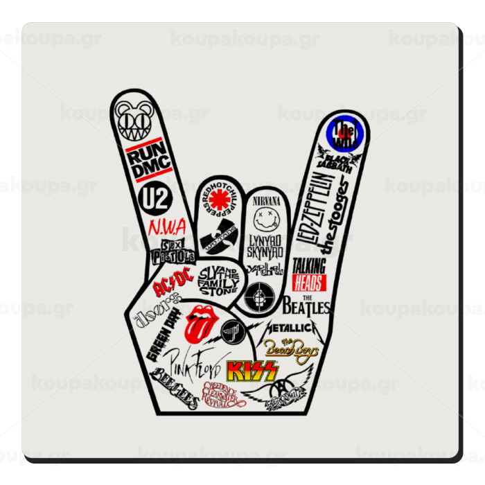 Best Rock Bands hand, Τετράγωνο μαγνητάκι ξύλινο 6x6cm