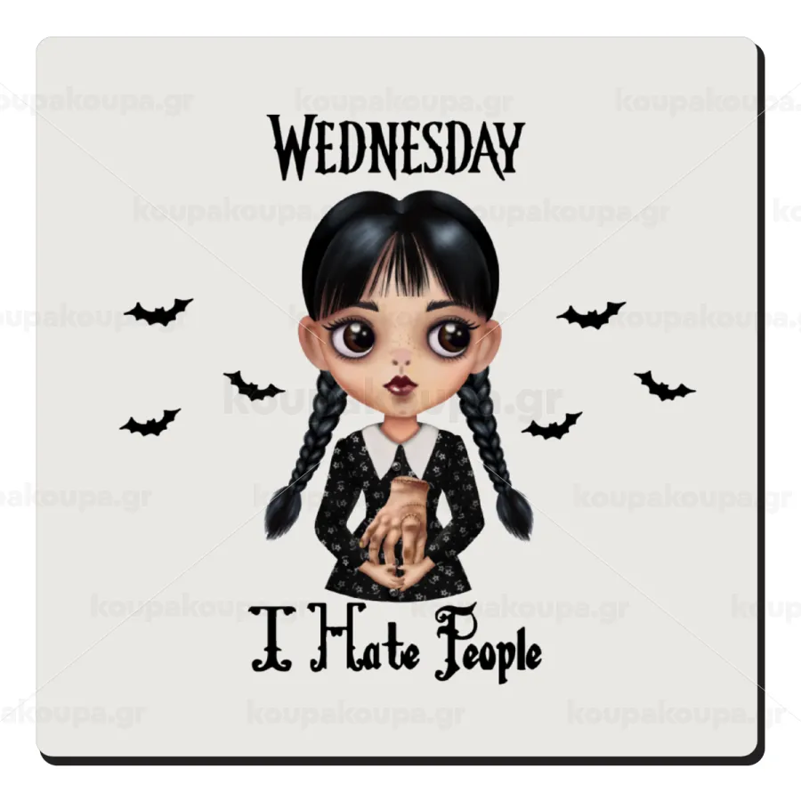 Wednesday Adams, i hate people, Τετράγωνο μαγνητάκι ξύλινο 6x6cm