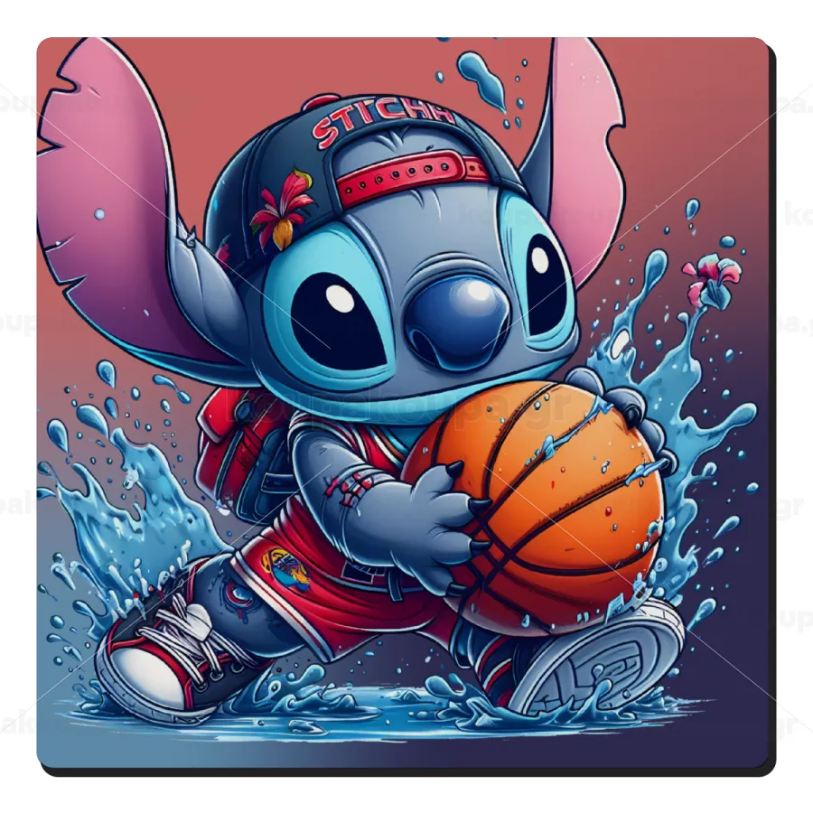 Stitch Basketball, Τετράγωνο μαγνητάκι ξύλινο 6x6cm