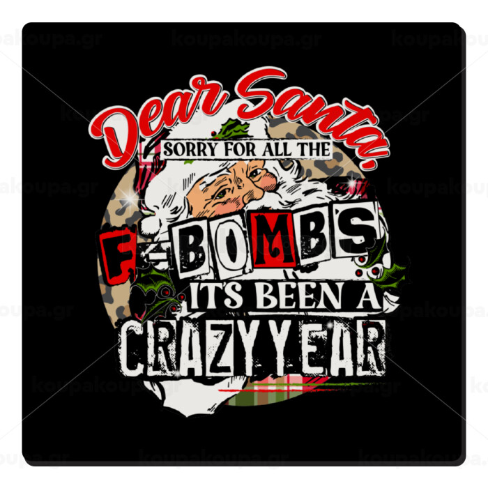Dear Santa, sorry for all the F-bombs, Τετράγωνο μαγνητάκι ξύλινο 6x6cm