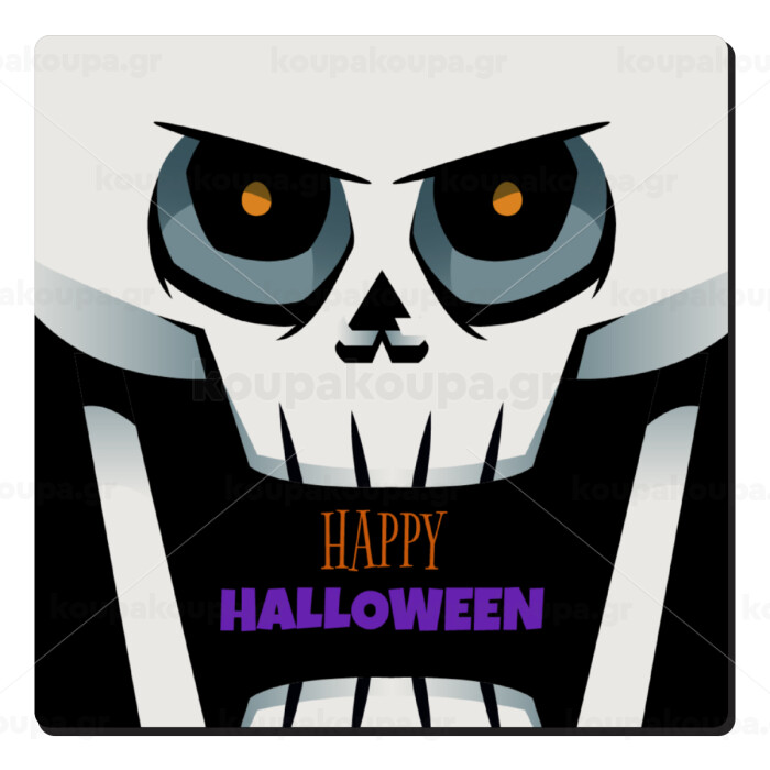 Halloween trick or treat Skeleton, Τετράγωνο μαγνητάκι ξύλινο 6x6cm