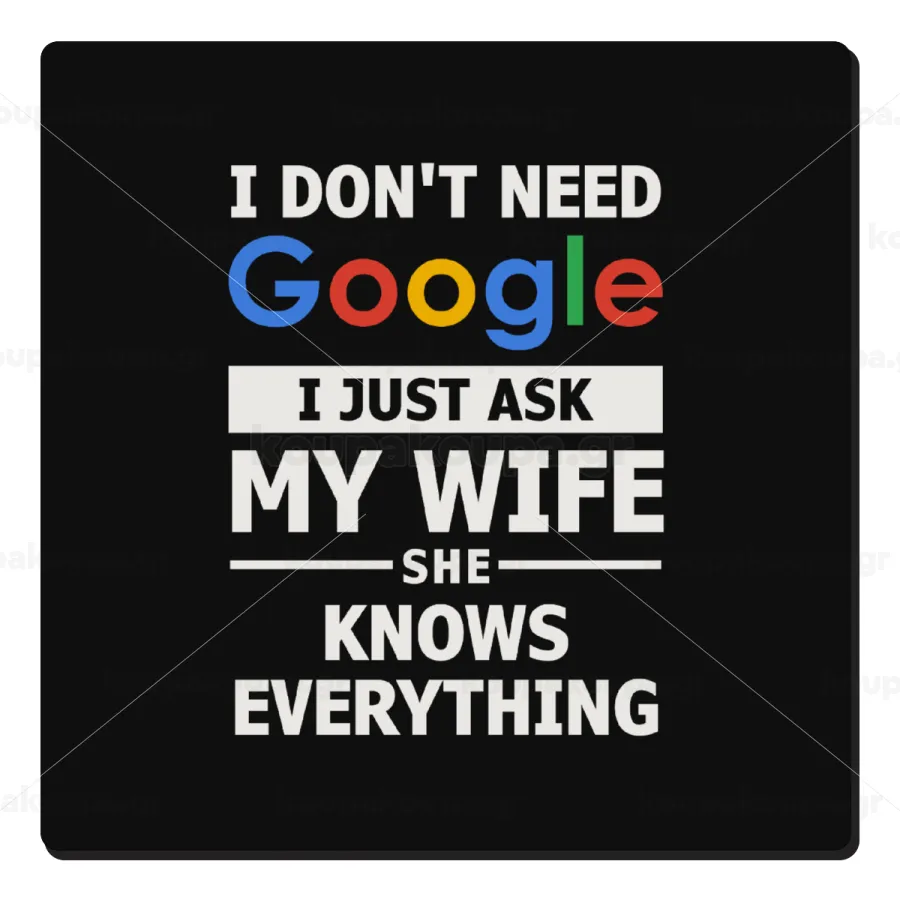 I don't need Google, just ask my WIFE, Τετράγωνο μαγνητάκι ξύλινο 6x6cm