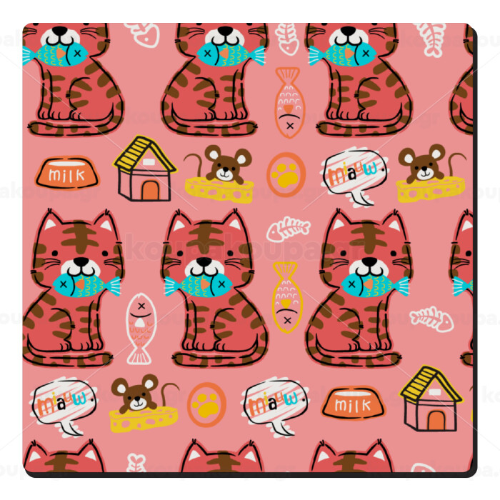 Cats and Fishes, Τετράγωνο μαγνητάκι ξύλινο 6x6cm