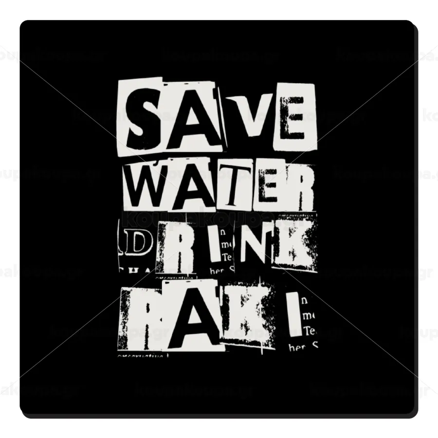 Save Water, Drink RAKI, Τετράγωνο μαγνητάκι ξύλινο 6x6cm