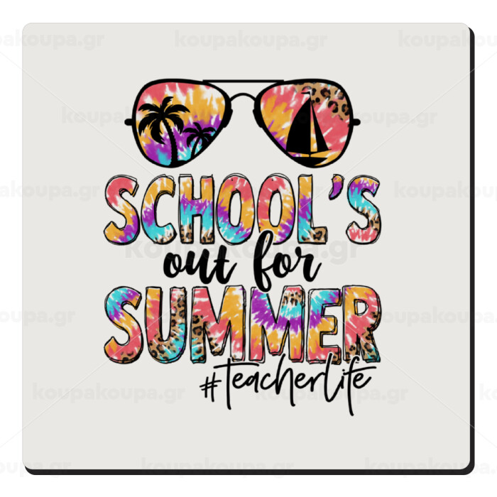 School's Out For Summer Teacher Life, Τετράγωνο μαγνητάκι ξύλινο 6x6cm