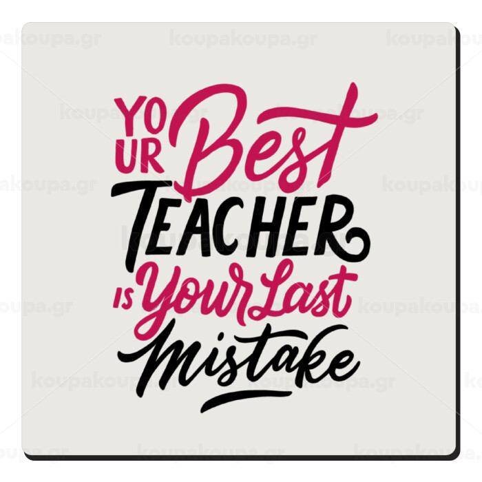 Typography quotes your best teacher is your last mistake, Τετράγωνο μαγνητάκι ξύλινο 6x6cm
