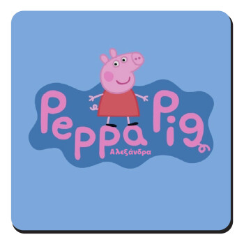 Πέππα το γουρουνάκι μπλε με όνομα, Τετράγωνο μαγνητάκι ξύλινο 9x9cm