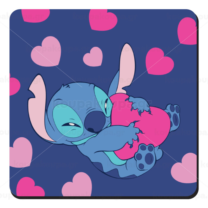 Lilo & Stitch hugs and hearts, Τετράγωνο μαγνητάκι ξύλινο 9x9cm