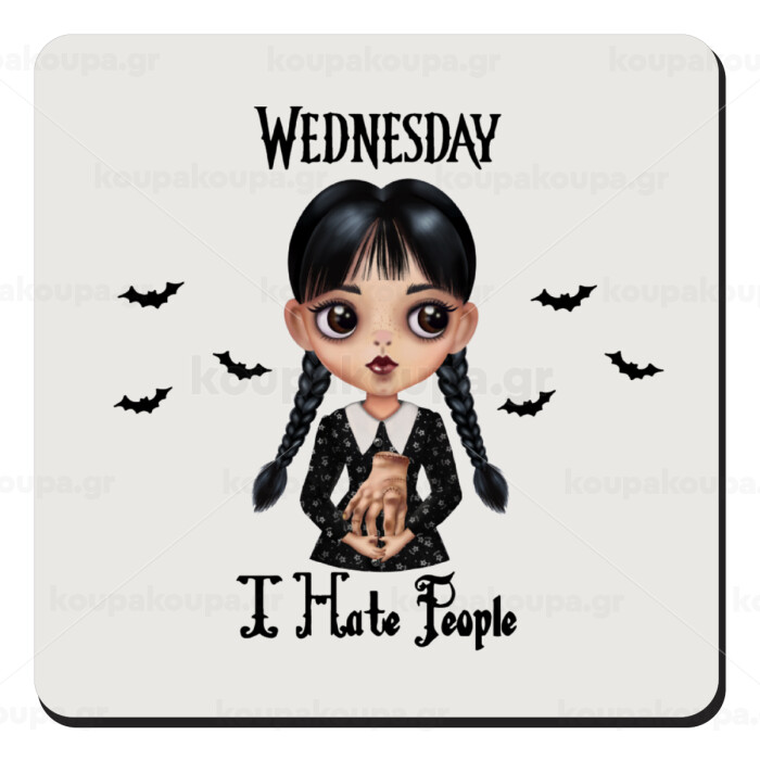 Wednesday Adams, i hate people, Τετράγωνο μαγνητάκι ξύλινο 9x9cm