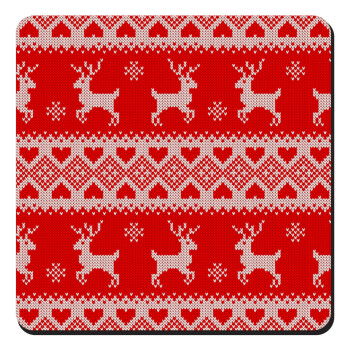 Χριστουγεννιάτικο πλεκτό ελάφια, Τετράγωνο μαγνητάκι ξύλινο 9x9cm