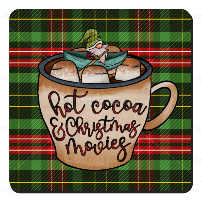Hot Cocoa And Christmas Movies, Τετράγωνο μαγνητάκι ξύλινο 9x9cm