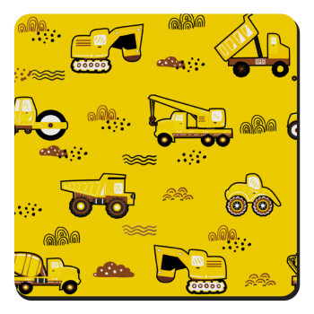 Αμαξάκια φορτωτές και μπουλντόζες, Τετράγωνο μαγνητάκι ξύλινο 9x9cm