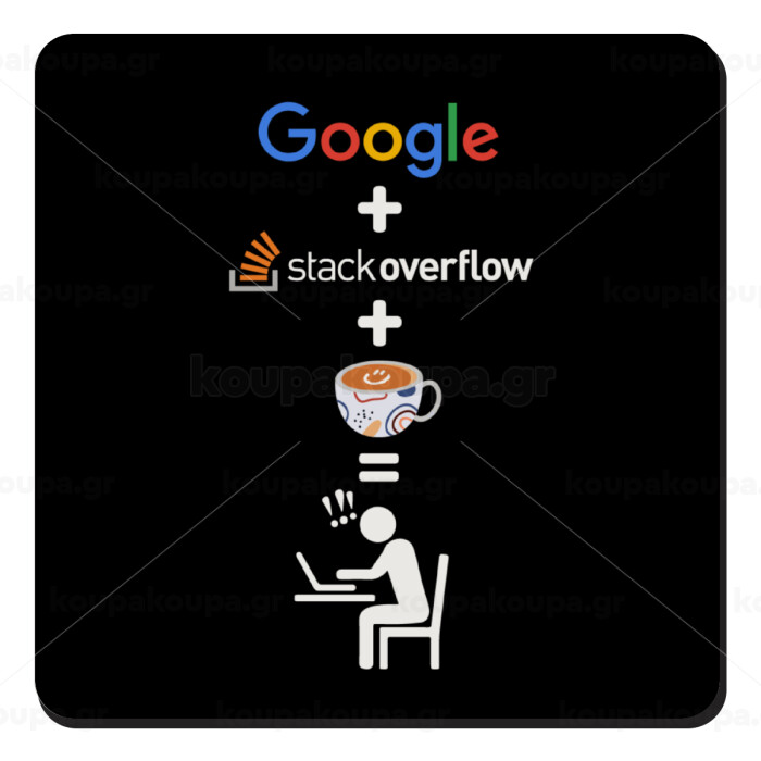Google + Stack overflow + Coffee, Τετράγωνο μαγνητάκι ξύλινο 9x9cm