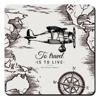 To travel is to live, Τετράγωνο μαγνητάκι ξύλινο 9x9cm