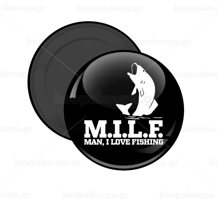 M.I.L.F. Mam i love fishing, Μαγνητάκι ψυγείου στρογγυλό διάστασης 5cm