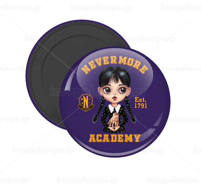 Wednesday Adams, nevermore, Μαγνητάκι ψυγείου στρογγυλό διάστασης 5cm