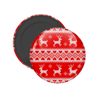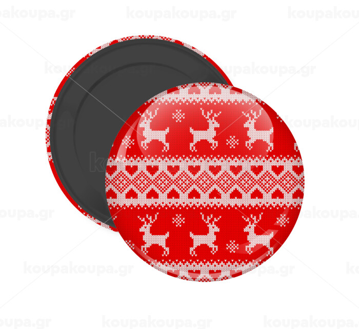 Χριστουγεννιάτικο πλεκτό ελάφια, Μαγνητάκι ψυγείου στρογγυλό διάστασης 5cm