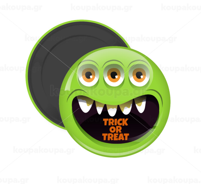 Halloween trick or treat 3 eyes monster, Μαγνητάκι ψυγείου στρογγυλό διάστασης 5cm